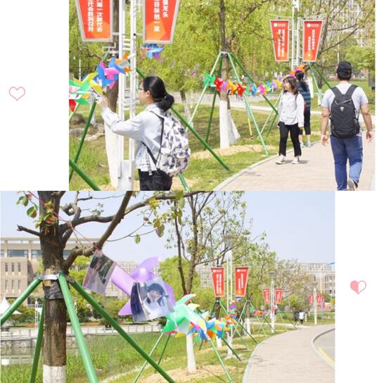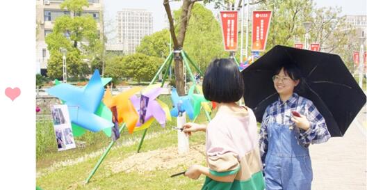 主要展出了蕴含暖心的、有积极向上的心情语录的作品,向大家展示了台院的最美的时光,最真的笑容,将开怀之花绽放于校园。林荫中风车铃铛的“沙沙”声和同学们的赞叹和讨论声交织一起,老师们停下脚步驻足欣赏。