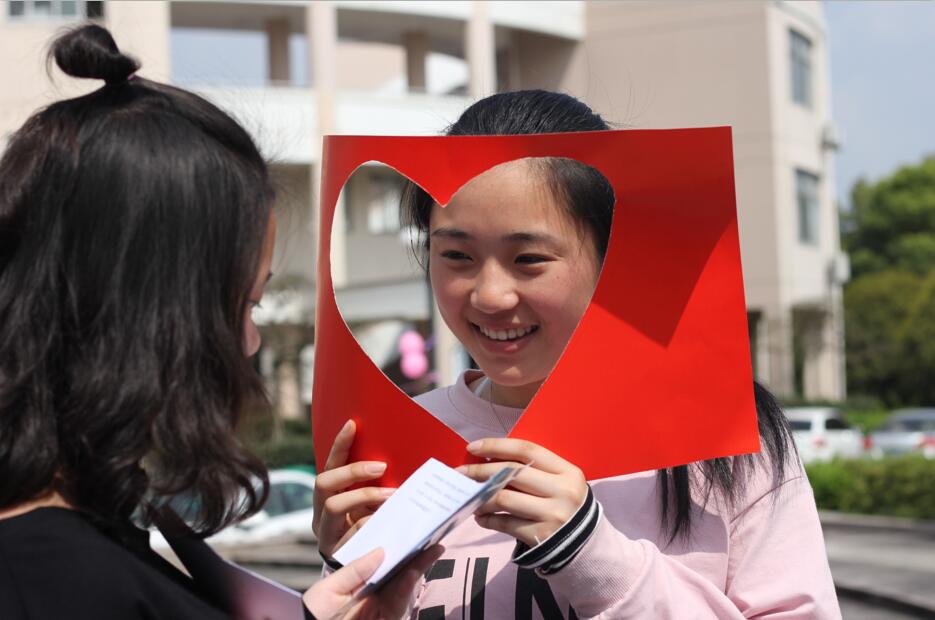 此次活动共设5个环节,各环节环环相扣、趣味迭生。活动伊始,同学们以照片和告白情书方式分享爱情的模样——青涩、甜蜜和浪漫。随后,在宛转悠扬的音乐中,有趣的瞪眼游戏使现场充满了悦耳的笑声,用吸管传递心型的洋葱圈活动彰显出同学间的友好情谊和团队间的默契协作。活动尾声,爱的告白留言板以涓涓细语的柔情诠释了青春最美的模样,同学们也收获了温馨的爱心礼物。