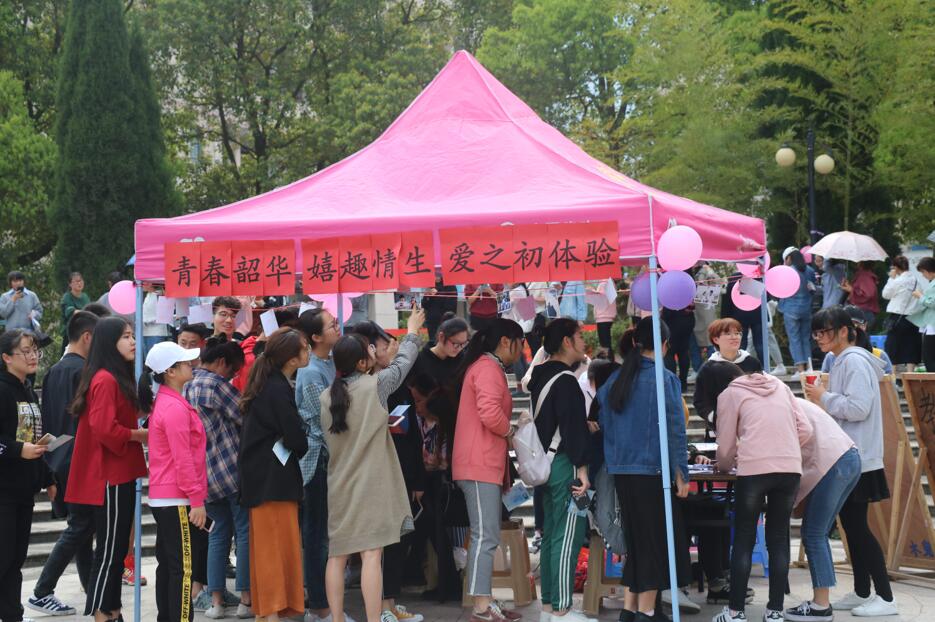 为培养大学生良好的心理素质、鼓励大家勇敢表达爱意,教师教育学院与外国语学院合作于3月29日下午在学生活动中心大圆盘处举办了“青春韶华•嬉趣情生”情感传递活动。各学院的同学们都积极地参与到了本次活动中。