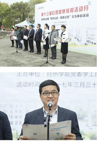 3月30日下午,校第十三届“心理健康教育活动月”启动仪式在临海校区举行。校党委委员、宣传部长牟惠康出席并讲话;学工部部长周全宝、保卫处处长林才溪、团委书记潘瑛、教务处副处长陈灵强、后勤服务管理处副处长朱治月、图书馆副馆长杨凌云出席,学工部副部长张梅芬主持仪式。校心理健康教育与咨询中心老师、各学院辅导员、心晴学社社员及学生代表等近300人参加启动仪式。