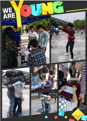 就如“团队接力”比较好玩,考验了同学们之间的合作精神,也许在失败的时候,队友之间偶尔会有些小抱怨,但在那完成的一瞬间,那一声欢呼,传达出来的喜悦感染着每一个人。“隔空拥抱”既考验了同学们之间的默契也考验了他们的勇气,当遇见很难克服的困难时,朋友的一个拥抱,会给我们鼓励,带来无尽勇气。