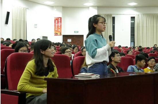陈文泽教授从大量贴近现实、鲜活生动的大学生事例分析入手,结合时代特点和当代大学生的身心特征,深入浅出地阐述了大学生的心理问题、心理分析的四个层次和解决对策三大主题。陈文泽教授指出,在目前社会迅速发展的形式下,大学生的心理问题日益增多,包括学习方面、生活方面、人际关系方面、自我认知方面、情爱方面、情绪方面等,会不同程度地出现焦虑、自卑、压抑等心理,严重影响到大学生的健康成长和国家对人才的培养质量。因此,需要高度重视大学生心理健康问题,不仅具有理论意义,而且具有重要的现实意义。在解决对策主题中,陈文泽教授特别指出了心理健康教育的重要性,提出:教育就是引导,给学生指明方向,使生活发生变化,寻求新的可能性 。讲课结束后,陈文泽教授增加了半个小时的现场互动环节,同学们就生活、学习中遇到的心理困惑纷纷求教于陈教授,陈教授一一给予耐心细致地解答。