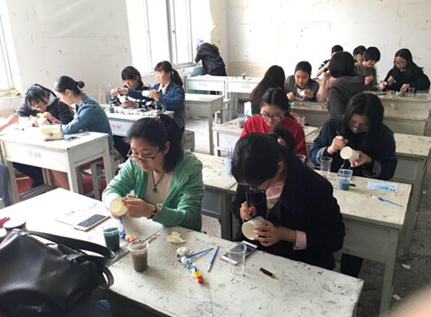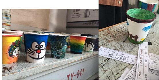 最后是突出艺术学院艺术的活动纸杯彩绘,同学可以用画笔在一次性纸杯上画上自己喜欢的图案,培养学生的想象力。活动一开始便人潮蜂拥,特别是具有我们学院特色的纸杯彩绘活动受到了许多同学的好评,画笔和空白纸杯也几次宣布告罄,难挡同学们的热情,工作人员只得再次抢购。