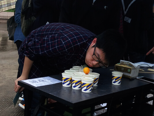 春雨连绵不绝,然而活动帐篷前却依然是排起了长龙,同学们有的独自前来,有的三五成群。活动共有3个小游戏,分别是“乒乓的迷宫之旅”、“传承的情谊”与“让你下来就下来!”。在游戏中,同学们与杯中的乒乓球做斗争,用筷子传递皮筋,作着独特的表情。游戏虽然简单,但期间不时有笑声响起,同学之间的距离在逐渐拉近。在此期间,同学们不仅得到了学分,还收获了一份快乐。
