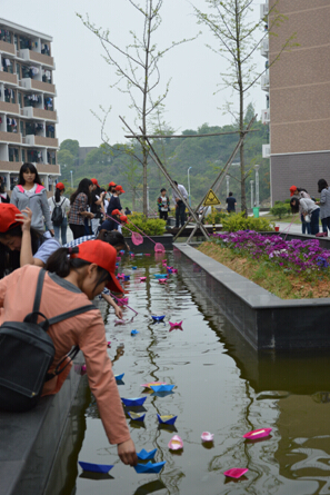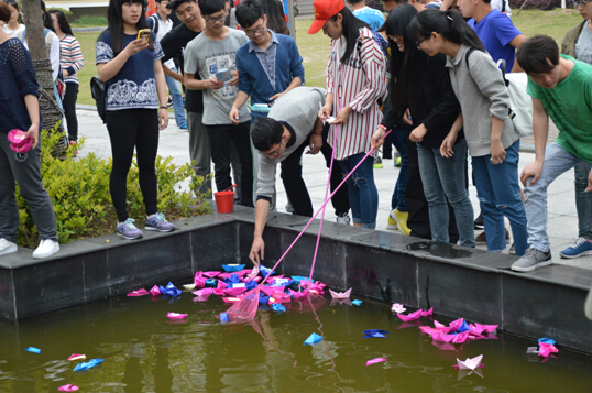 该活动围绕本届心理健康教育活动月“悦纳自我,心暖花开”这一主题展开。活动吸引了椒江校区各学院近千名同学的积极参与。在活动现场,同学们打捞藏有各种悄悄话的彩色纸船,与陌生的人互相分享“内心小故事”,此外还可以凭着纸船参加现场版“抢红包”环节,红包里藏有外国邮票,书签,胸针等精美小礼品,颇具创意。