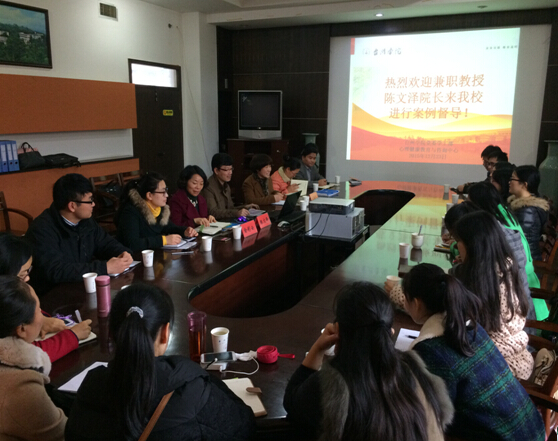 陈文泽教授长期从事精神医学和心理卫生工作,具有扎实的专业理论功底和丰富的临床实践经验,擅长精神障碍的临床治疗和轻性心理障碍的咨询、评估及心理行为等综合干预,对综合医院的精神医学问题有独到见解。本次案例督导活动,陈文泽教授首先给大家介绍了其门诊中的两个典型案例,并对案例进行了详细剖析。随后,他对校专兼职心理咨询师提出的个案进行一一督导。校专兼职心理咨询师就个案咨询过程中遇到的问题和困惑,与陈教授进行交流探讨,陈教授一一给予具体解答,并就如何更好地开展心理咨询实务提出建议。
