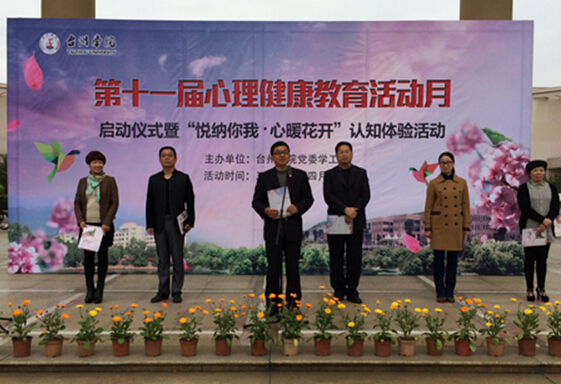 4月9日下午,校第十一届“心理健康教育活动月”启动仪式在临海校区举行。校党委委员、宣传部长牟惠康致辞;学工部部长周全宝、后勤服务管理处处长林海斌、团委副书记徐璐洁出席,学工部副部长张梅芬主持仪式。校心理健康教育与咨询中心老师、各学院辅导员、心晴学社社员及学生代表等近500人参加启动仪式。