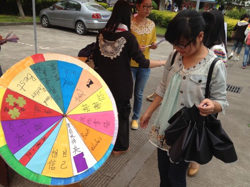 为了将幸福持续到底,我们为每一个来参与投票的同学也准备了转转盘赢幸福环节,许多同学转到小奖品:笔,本子,文件夹,绕线器等,礼轻情谊重,就算没有转到也会收到我们所送出的幸福的祝福。