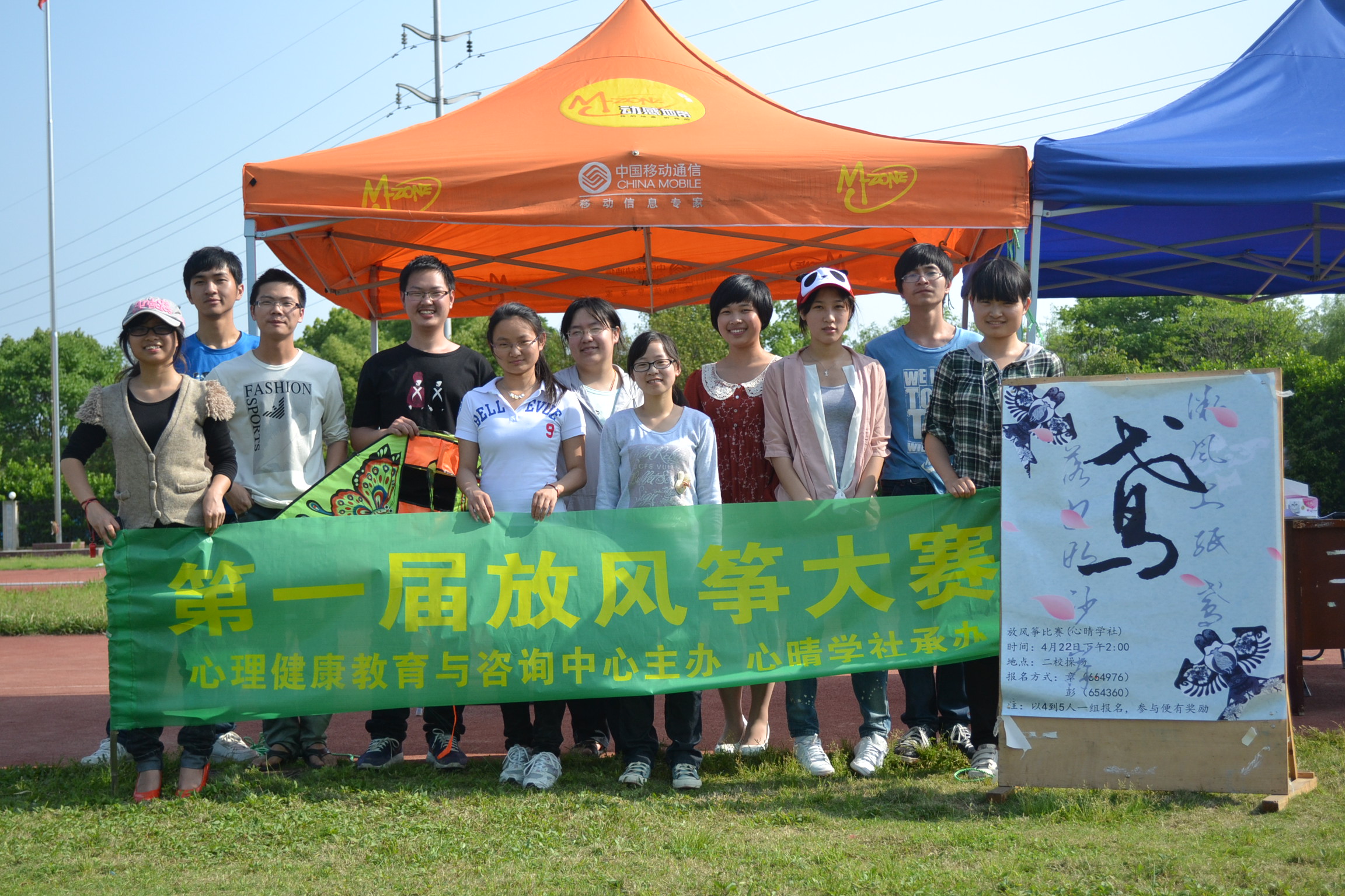 4月22日,由心晴学社承办的校心理健康教育活动月之一----放风筝比赛在学校的大操场举行,吸引了13个(每个小组都有三至五名成员)的比赛队伍报名参赛。