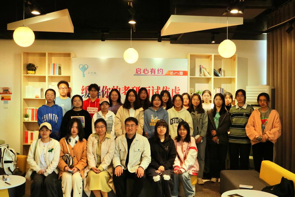3月9日下午,由学工部心理健康教育与咨询中心组织的“启心有约”第25期活动在心湖书院举行。活动邀请教师教育学院心理学教师唐继亮博士以“缓解你的考研面试焦虑”为主题,与同学们进行面对面交流。活动由专职心理咨询师刘冉主持,25位学生代表参加。