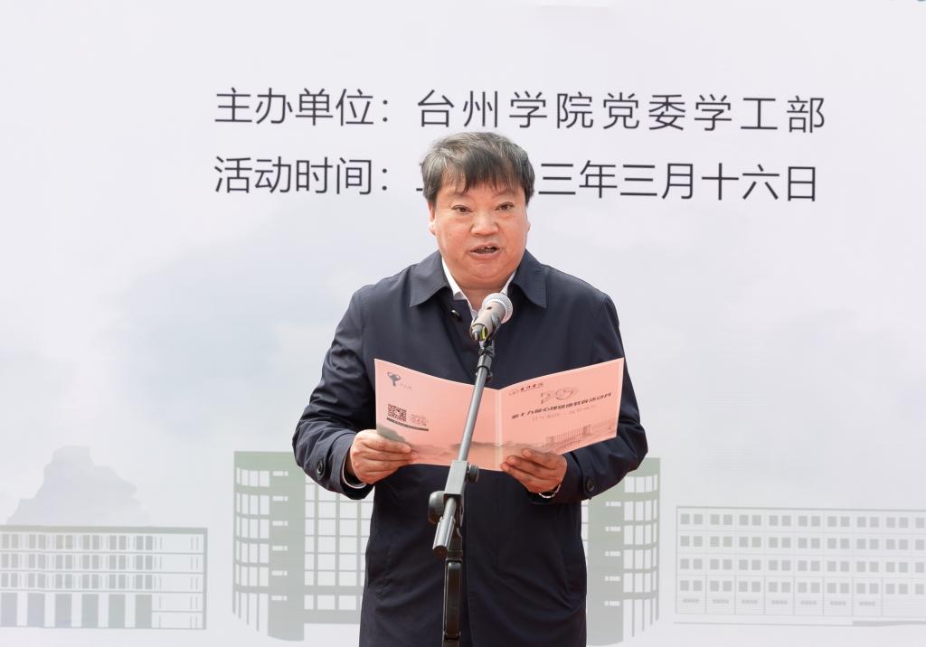 3月16日下午,校第十九届“心理健康教育活动月”启动仪式在椒江校区至善广场举行。校党委副书记金先龙致辞,校党委委员、宣传部部长金松,学工部部长张梅芬,后勤服务管理处处长庞宪洪,保卫处处长杨启富,团委书记潘垚出席,学工部副部长王林军主持仪式。校心理健康教育与咨询中心老师、大学生心理健康互助中心成员及学生代表等近300人参加启动仪式。