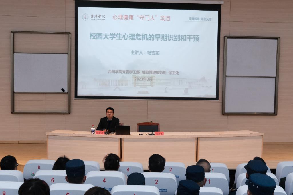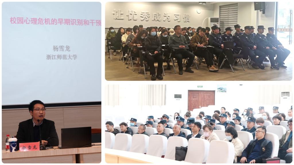 为进一步健全心理健康四级网络机制,提高校园心理危机干预工作的针对性、实效性。学校于3月31日分校区开展宿管、安保人员校园心理危机干预专题培训,浙江师范大学外国语学院党委副书记杨雪龙应邀主讲,学工部、后勤处、保卫处相关领导及全体宿管、安保人员参加本次培训,心理中心主任金彩云主持培训。