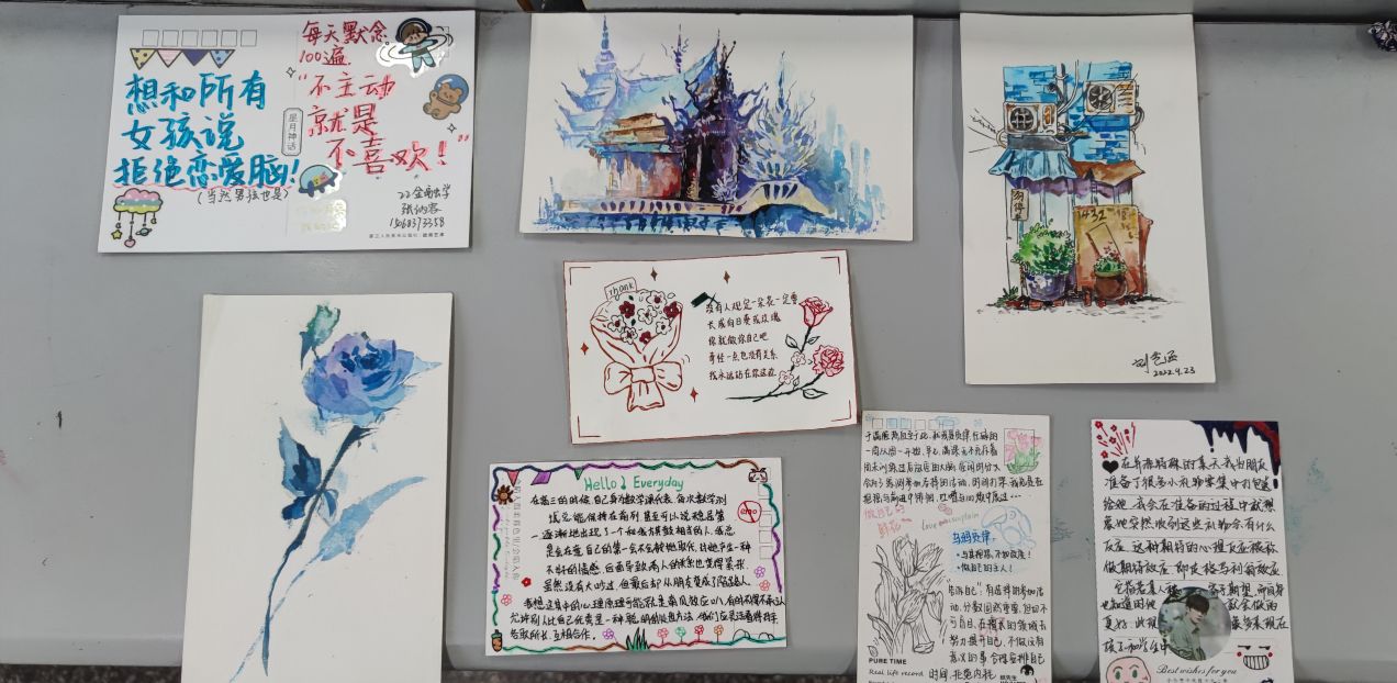 3月28日晚自习,生活部的干事进到各班级宣传活动,讲解活动细则。活动以制作心理明信片形式让学生分享自己的生活,让学生与学生之间有更多的互动,丰富学生的课余生活,排解学习生活的压力。在活动中,同学们将自己的心里话写到卡片上,并辅以装饰,在这次活动中同学们分享自己的苦辣酸甜,为大学生活添加了一份难忘的回忆。活动中,同学们积极参加,贡献出了许多优秀的作品,在经过评委的评选之后,选出了一二三等奖。