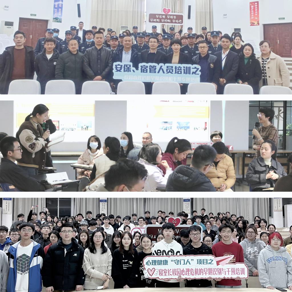 为加强心理危机干预的针对性、实效性,组织开展心理危机干预“守门人”培训,为全校辅导员、班主任、宿管员、安保人员、心理委员、寝室长等作“谈心谈话实务操作”、“心理危机早期识别与干预”等培训,1200余名师生参加学习。同时,实施专职心理咨询师网格化服务二级学院机制,为各学院建设二级心理辅导站、开展心理健康教育提供支持服务,有效夯实四级联动网络,全方位保障学生身心健康。
