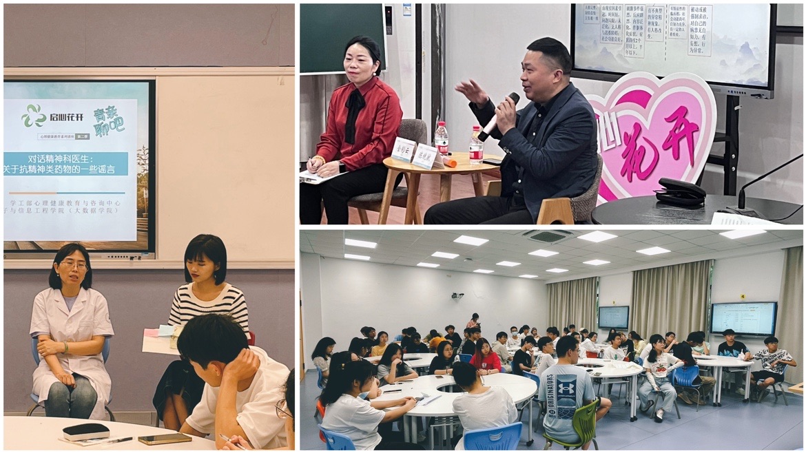 “启心花开”整合教育、心理、精神卫生等多方位资源,打造心理育人合作机制。本季“启心花开”创新采用“心理咨询师对话精神科医生”的方式,牵手精神科专家,走进二级学院,帮助同学们更好地认识心理疾病,打破对“心理疾病”、“抗精神类药物”、“精神科医生”的思维定式和非理性认知,多角度推广和宣传心理求助的方式渠道。