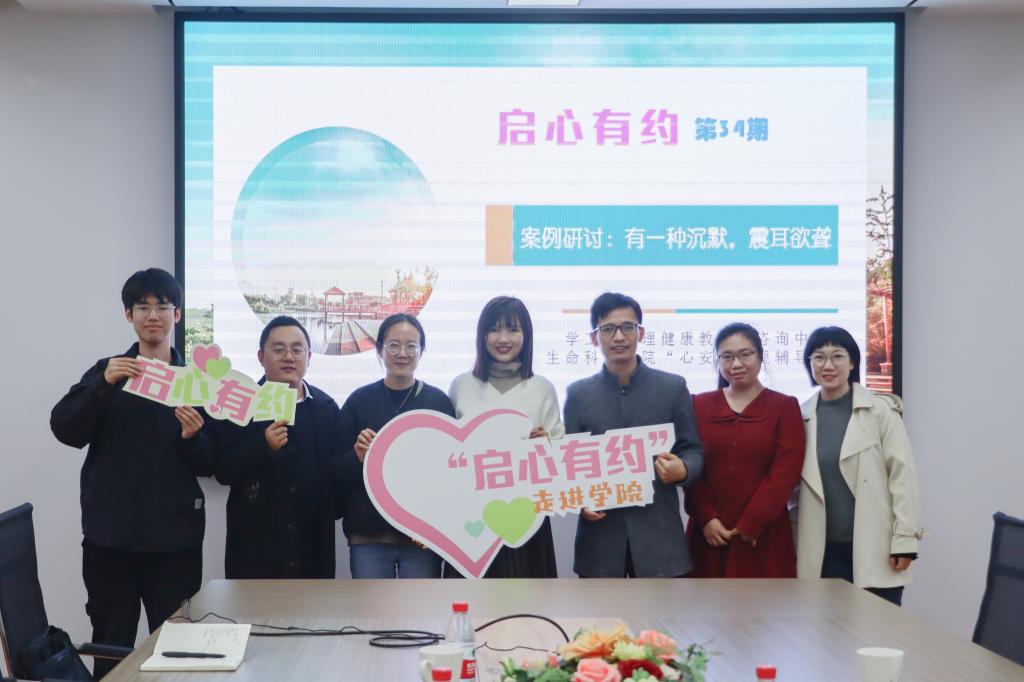 为进一步提升心理健康工作水平,推进心理育人工作走深走实, 12月15日,校心理健康教育与咨询中心联合生命科学学院“心安”心理辅导站开展以“有一种沉默,震耳欲聋”为主题的第34期“启心有约”活动,生命科学学院全体辅导员、校心理健康教育与咨询中心专职心理咨询师共同参与研讨。