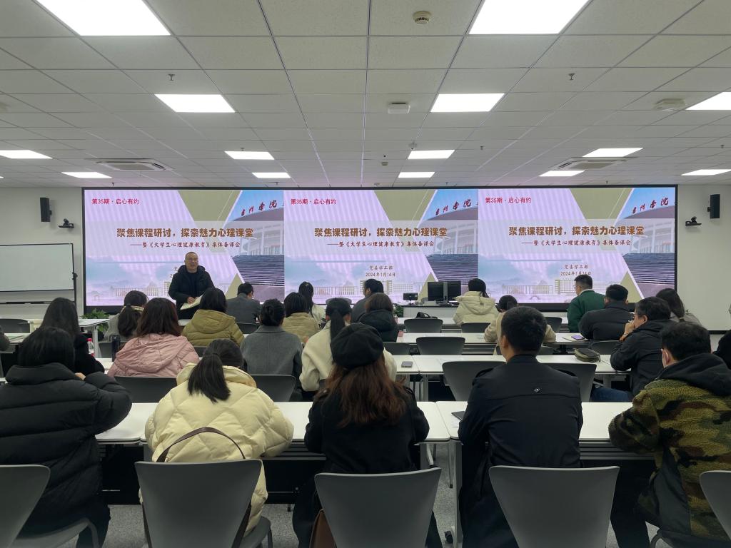 为推进《大学生心理健康教育》课程建设,打造专业化教师队伍,1月14日,学工部心理健康教育与咨询中心举办以“聚焦课程研讨,探索魅力心理课堂”为主题的第35期“启心有约”活动暨大学生心理健康教育课程集体备课会,心理中心副主任王蕴瑾主持备课会,全体任课教师参与研讨。