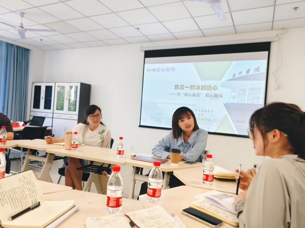 研讨会上,三位辅导员分别交流了自己在与学生谈心谈话及家校沟通过程中遇到的困惑和难点,与会人员共同商讨问题原因、工作现状及“破局之法”,特别就如何与家庭关系复杂、社会支持系统缺乏且有重大负性生活事件的学生进行有效“对话”进行了深入探讨。