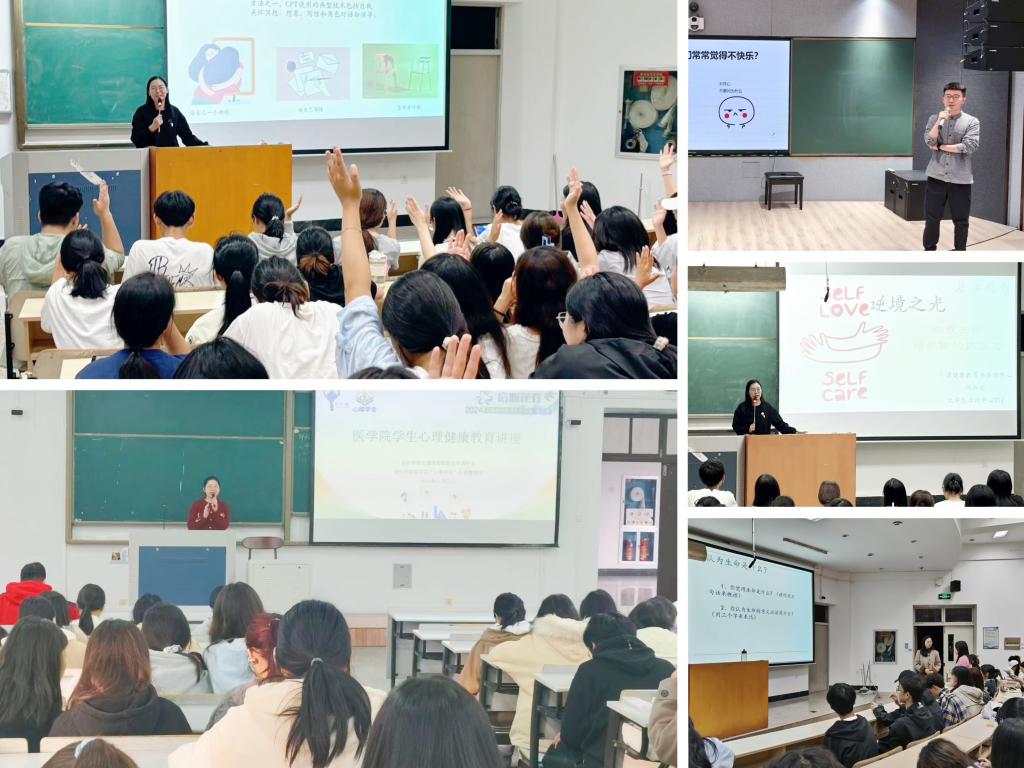 心理咨询师王蕴瑾作“闪闪发光的自信”主题讲座,从阿德勒心理学理论角度分享如何正确看待他人评价,重建自信。心理咨询师陈玮以“向阳而行·自我关怀”为主题,介绍了自我关怀的重要性,分享了正念呼吸、体感疗愈、八正法等情绪调节的方法和技巧,帮助同学们更多地关怀和照顾自己,创造一个健康、幸福和有意义的大学生活。