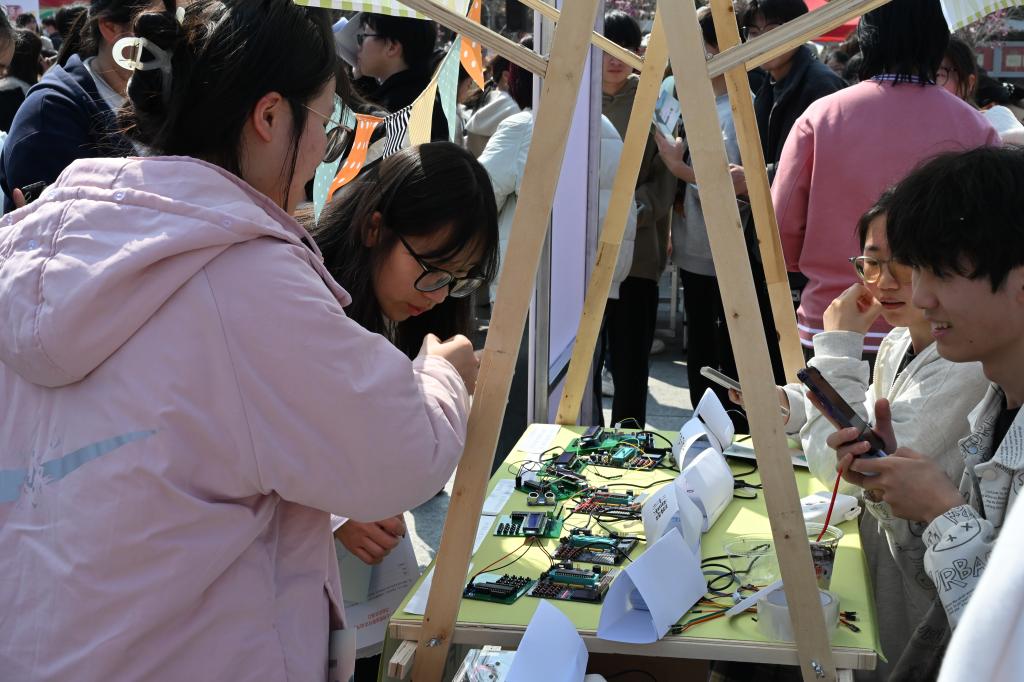 活动现场打破学科边界,构建“心理+科技”双轨赋能模式。电信学院打造的“智能单片·创心无限”活动将暖心话语融入手工单片机作品中,参与者点按开关就能听到来自陌生人真诚的问候;智能制造学院现场演绎的故事汇接龙活动,以叙事疗法为基础,让参与者成为主宰,决定主人公的人生。“当我为主角做出重要抉择的那一刻,突然感觉到一阵轻松,原来做决定并没那么难。”建筑工程学院的陈同学在体验后感叹到。