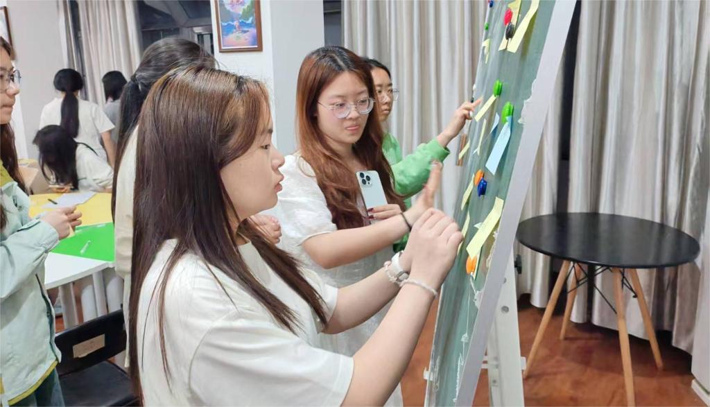 本次活动设置两大沉浸式体验。在“共筑心灵信号塔”活动中,全程禁止语言交流,仅凭手势与眼神进行协作,用20张A4纸搭建承重纸塔。在“共鸣回声洞”活动中,通过匿名纸条倾诉内耗故事,运用“共情-赋能-策略”三明治反馈法开展朋辈支持。为保护隐私,设置“画△即跳过”机制,现场对内耗故事进行暖心回应。