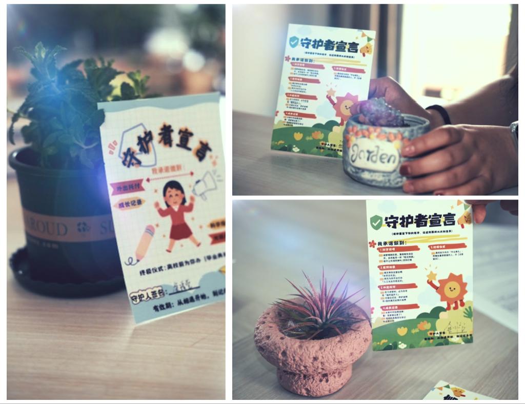 活动伊始,毕业生们从铜钱草、薄荷、红掌、太阳花等 9 种植物中选择心仪植株,郑重签署《守护者宣言》。这份特殊的“契约”不仅是对植物生长的承诺,更成为毕业生与自我对话的起点——有人为实习期间的植物预约“临时监护人”,有人在宣言中写下“陪你一起面对未知”的期许,让养护责任自然转化为情感寄托的开端。