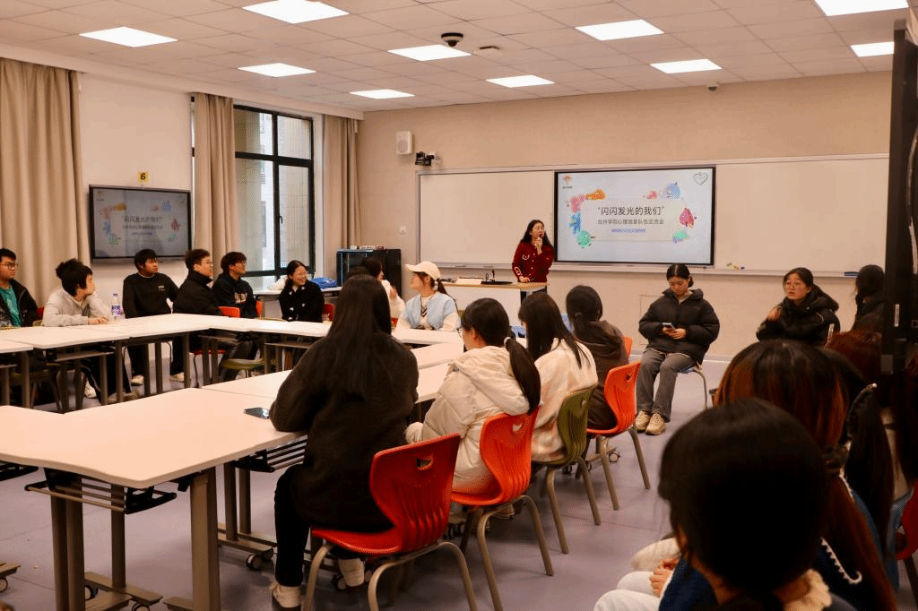 12月11日下午,学校大学生心理健康互助中心以“闪闪发光的我们”为主题,成功举办第32期“启心向阳”心理朋辈队伍交流会。互助中心及各二级学院60余名学生代表参与研讨,指导教师史莉娜出席活动。