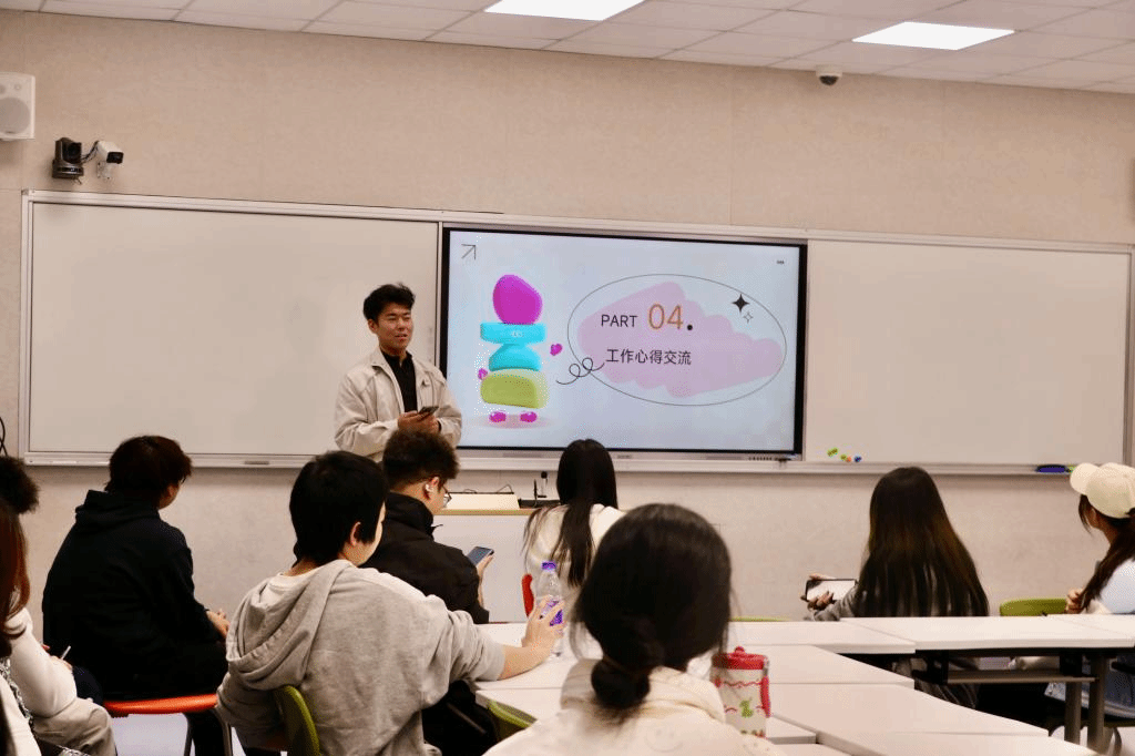 为助力队伍建设,交流会特别邀请建筑工程学院团学执行主席常新宇分享实践经验。“让成员建立部门文化自信、树立主人翁意识,才能激活工作热情。”拥有三年心理朋辈工作经历的他,结合自身感悟提出核心观点,并分享了具体举措:为成员拍摄工作剪影定格成长瞬间、推行轮流手写会议记录强化参与感、引导设定个人学期目标明确成长方向。实用的方法引发共鸣,与会学生纷纷表示“干货满满,收获颇丰”。