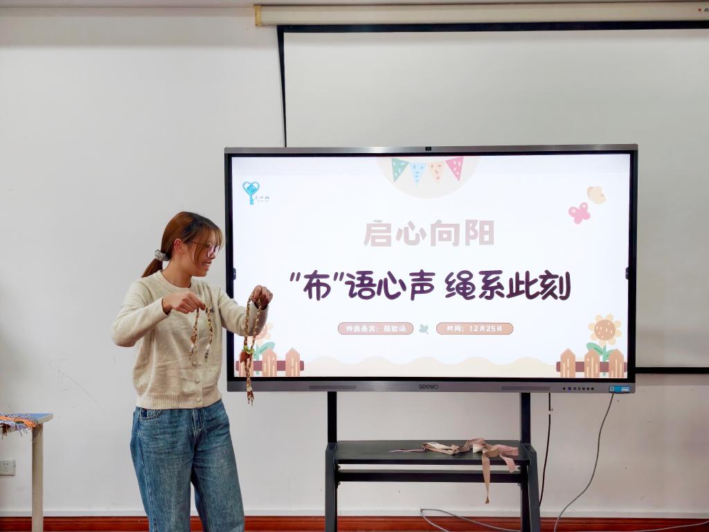 12月25日,校学工部心理健康教育与咨询中心以“‘布’语心声,绳系此刻”为主题,成功举办第33期“启心向阳”活动。活动邀请外国语学院颜歆涵同学担任指导嘉宾,近50名学子踊跃参与,在手工创作中舒缓压力、搭建朋辈交流桥梁。