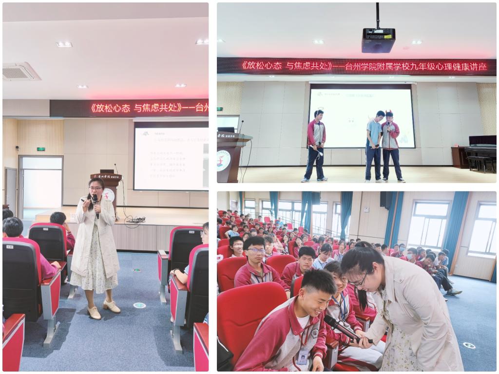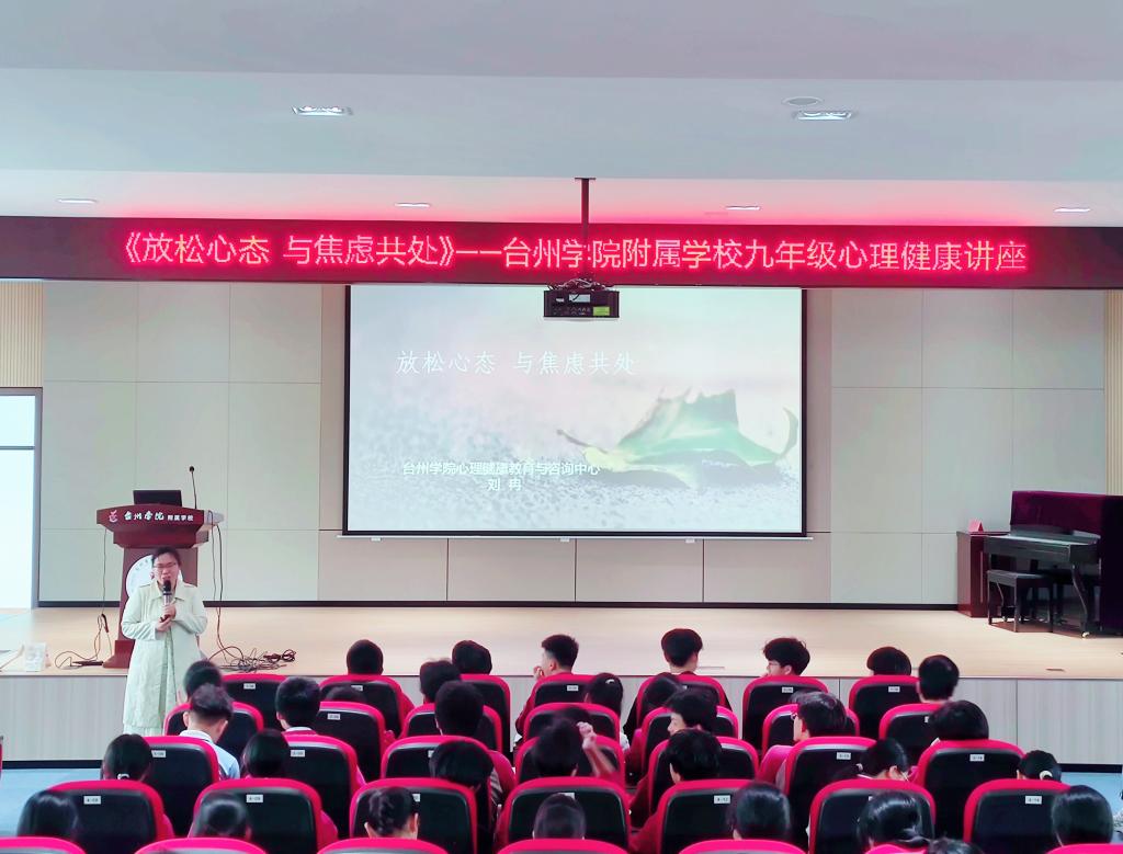 为助力青少年心理健康教育工作,加强与附属学校的互助合作,5月17日,校心理健康教育与咨询中心专职心理咨询师刘冉应邀走进台州学院附属学校,为九年级学生作题为“放松心态,与焦虑共处”的情绪管理心理健康讲座,附属学校300余名师生参加讲座。