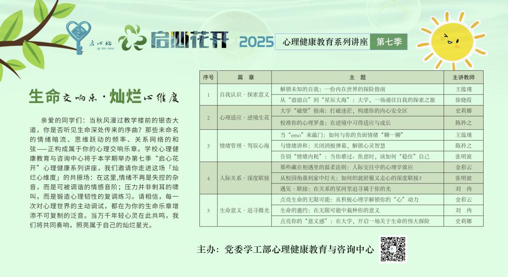 “启心花开”第七季 | 生命交响乐·灿烂心维度 讲座安排