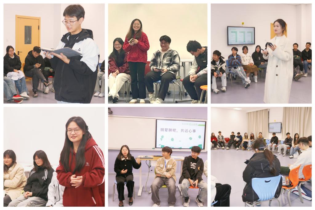 活动以圆桌讨论的形式展开,史莉娜充分肯定了同学们在心理工作中取得的进步和成绩,鼓励大家积极分享心得体会。同学们纷纷交流了在工作中的收获与成长,其中智能制造学院学生代表分享了他们用陪伴和关心引导学生走出失恋阴霾,积极拥抱生活的故事;医学院心理部展示了学院特色活动“心理晴雨表”,以“萤火虫”的身份回应同学们的情绪困扰,为同学们构建起排解情绪的空间;建筑工程学院学生代表则交流了在心理队伍中获得支持的亲身经历,表示未来会秉持“将爱传递”的初心继续做好心理工作。同学们踊跃发言,热情投入,不仅分享了自己的工作感受,也在交流中获得思维的启迪,情感的共鸣。