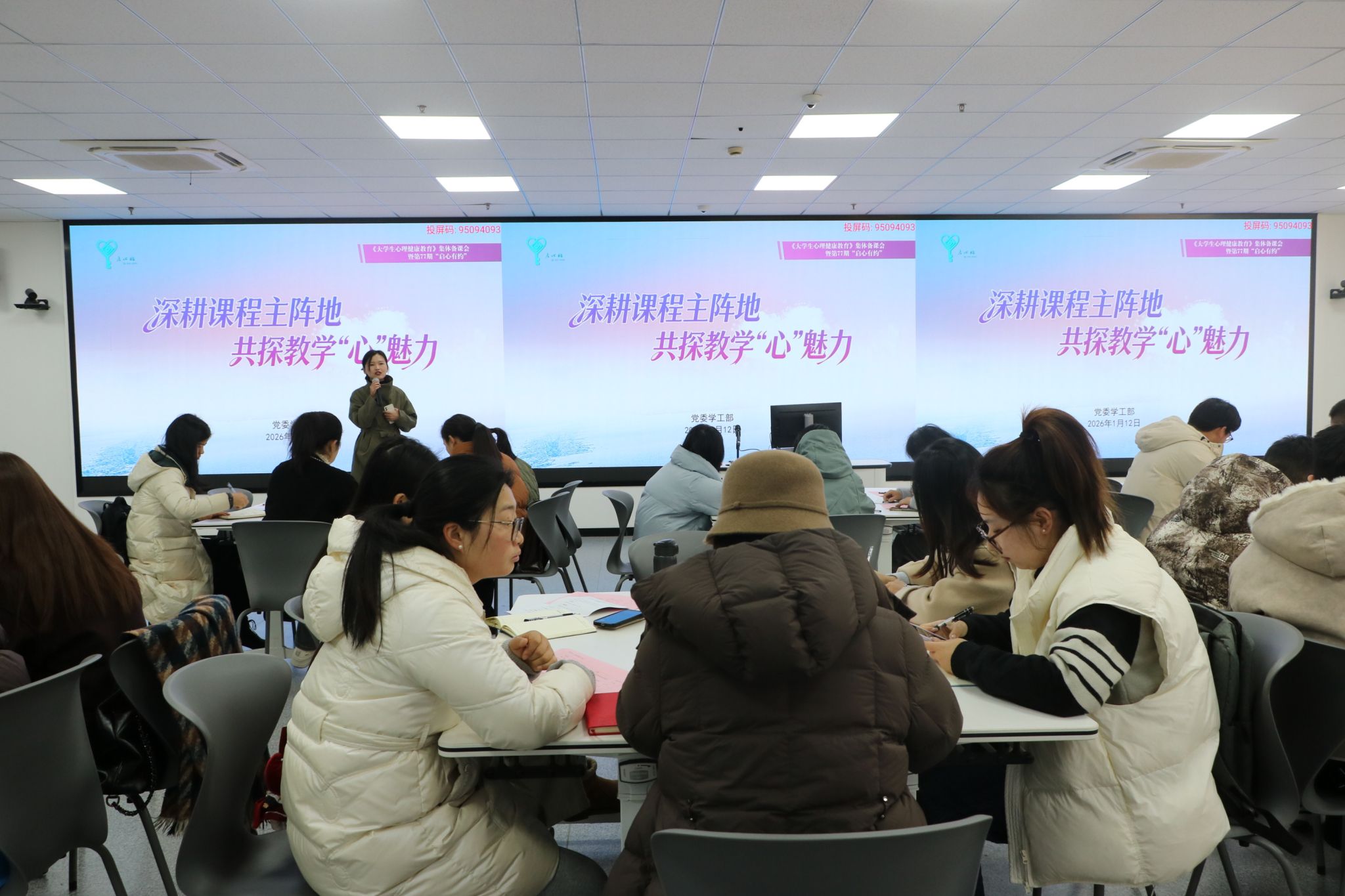 1月12日,学工部心理健康教育与咨询中心在椒江校区直播教室,成功举办以“深耕课程主阵地,共探教学‘心’魅力”为主题的《大学生心理健康教育》课程集体备课会暨第77期“启心有约”活动。活动特邀浙江中医药大学来燕、宁波大学朱婷两位老师开展全天候专题分享,心理中心主任王蕴瑾主持备课会,40余位心理健康教育课程任课教师参与研讨。