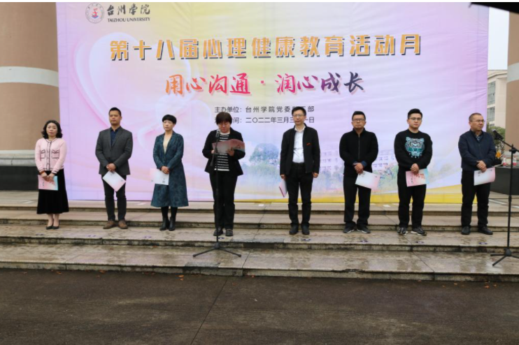 3月31日下午,台州学院第十八届“心理健康教育活动月”启动仪式在临海校区高架连廊举行。校党委委员、副校长李钧敏出席并致辞;校党委委员、宣传部部长金松,学工部部长张梅芬、后勤服务管理处副处长鲍思伟、保卫处副处长李文兵、团委副书记钟秉谕出席,学工部副部长王林军主持仪式。校心理健康教育与咨询中心老师、大学生心理健康互助中心成员及学生代表等50余人参加启动仪式。