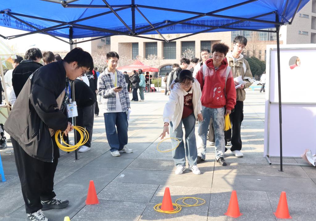 3月20日下午,由医学院“心晴学舍”心理辅导站主办的“情绪碰撞,体智偕长”情绪对对碰活动在至善广场火热举行。活动以趣味游戏的形式展开,让同学们在套圈游戏中体验情绪,在对对碰中消解情绪,以增强对不同情绪的感知和理解,进一步探索自我内心,实现心灵成长。
