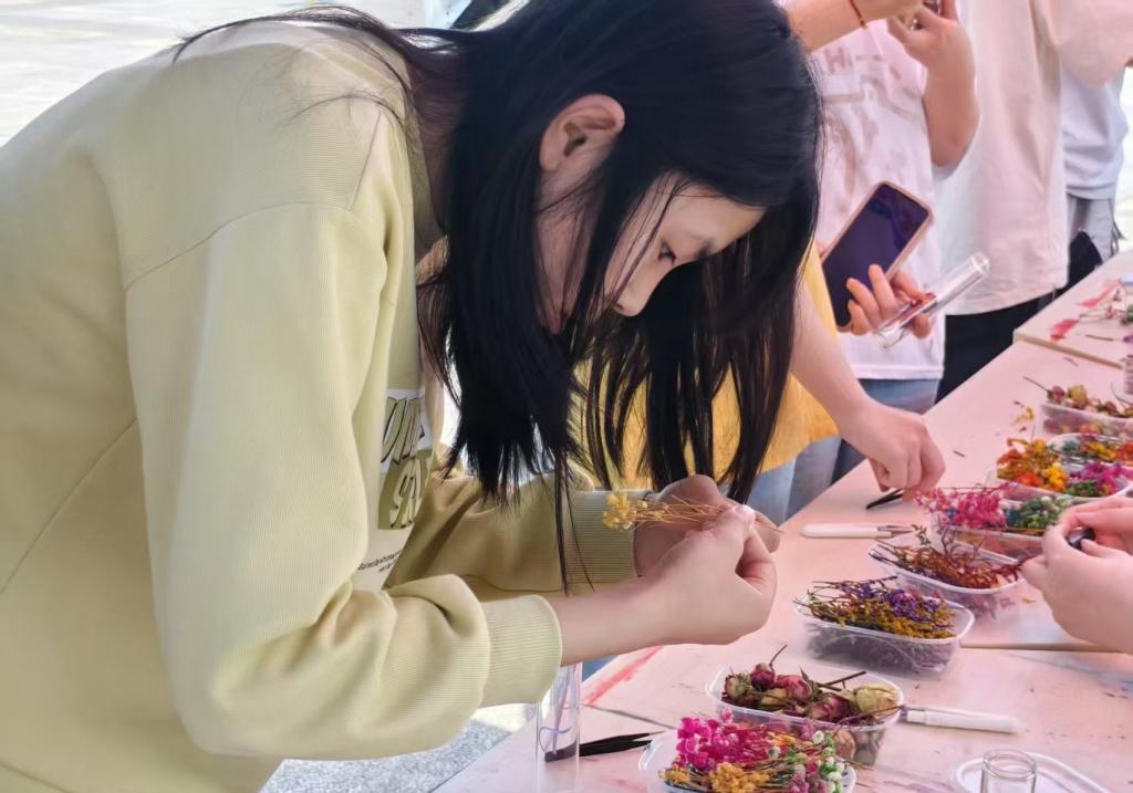 本次活动是学校第二十一届“五育润心·向阳而行”心理健康教育活动月的活动内容之一。这场“巧手生花”之旅,让同学们在艺术创作中按下压力的暂停键,以沉浸式手作助力青年学子减压,提升审美与动手能力,创新心理健康教育形式,为校园文化添注诗意与活力。