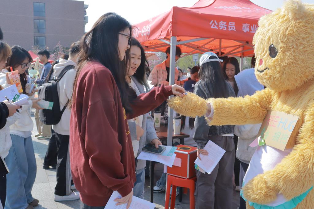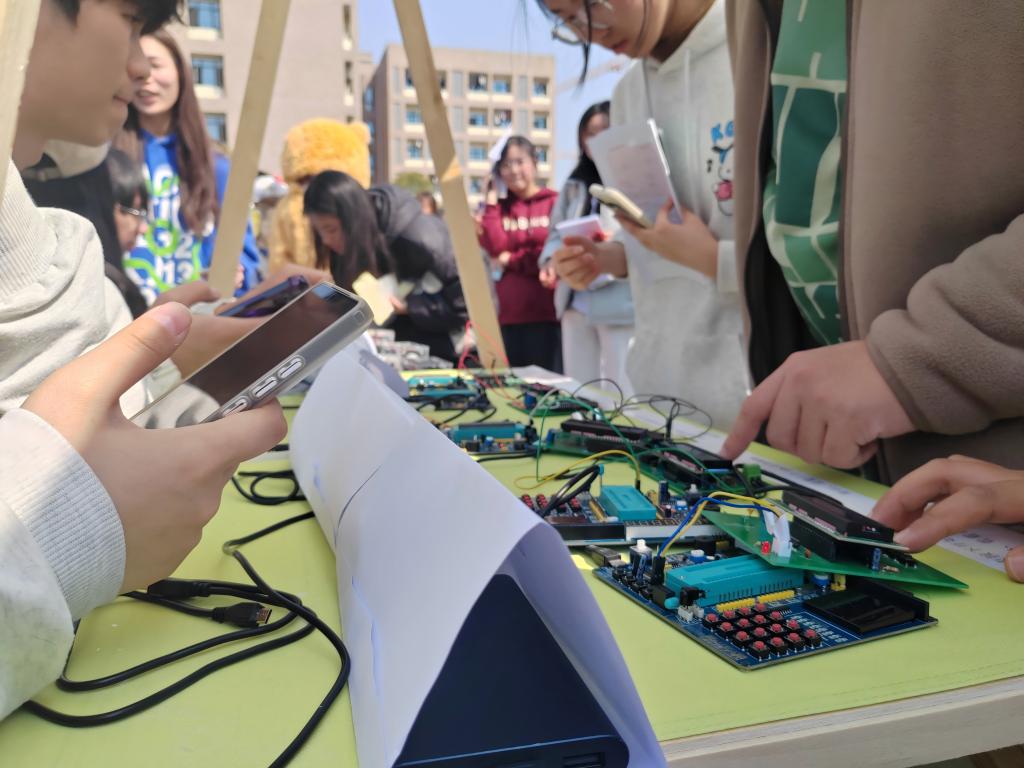 在校园心理游园会上,“智能单片・创‘心’无限”单片机作品展示与自由拥抱活动巧妙融合,既彰显学院专业特色,又传递校园温情。电子信息工程专业同学制作的单片机音响流淌着欢乐旋律,同学们与憨态可掬的“黄油小熊”热情拥抱、合影留念,并将春日心语投入“心愿箱”,路过的师生纷纷驻足参与。这场科技与温暖交织的活动,为春日校园和游园会现场注入融融暖意,成为现场一道独具魅力的风景线。