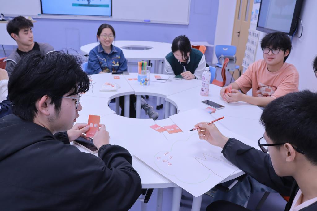 在“生命调色盘:绘制你的春季心灵图谱”团体辅导活动中,在心理老师引导下,现场形成“运动缓解压力”“阅读提升幸福感”等共识,同学们在欢声笑语中完成对情绪管理的集体认知升级,在“大树”的自然意象与生命隐喻的交织中,完成对成长本质的深度解构。