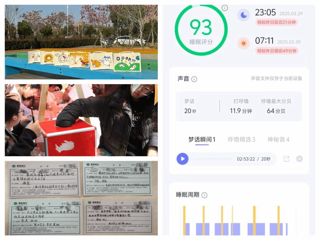3月,“心向阳光·愈见美好”一起做春日“显眼包”鼓励学生发挥想象力,大胆运用色彩,手工绘制包包,用手绘呈现春日的盎然与美好;“共学‘心’知识·助力‘心’成长”心理健康教育宣传活动通过年轻化、互动性强的方式传递心理健康理念,在轻松愉悦的氛围中学习知识;“采撷春光·渐入梦乡”睡眠打卡活动让同学们通过15天睡眠打卡计划养成早睡早起的良好习惯,帮助大家调整作息时间、提升学习效率。